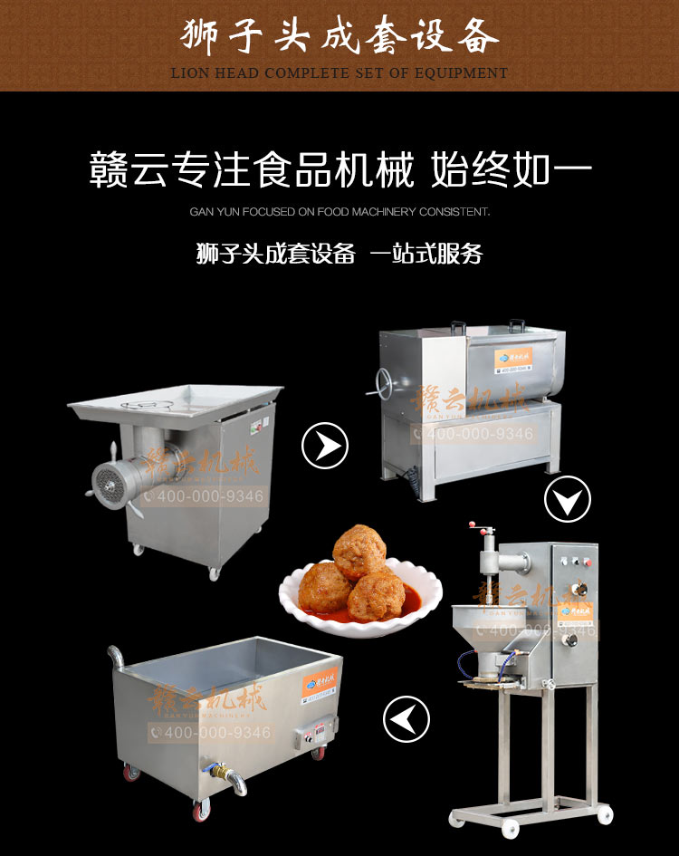 贛云牌獅子頭成套設(shè)備包含有攪拌機,絞肉機,成型機,水槽。是商用酒店的好幫手