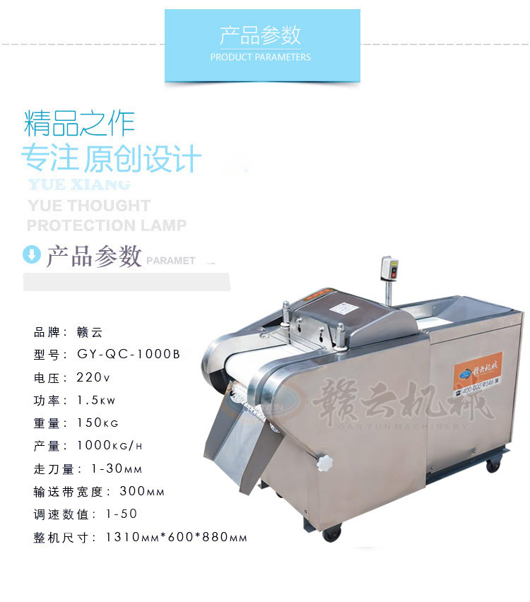 食堂切菜,食品加工切片切絲切丁切條,選贛云牌1000B型加厚切菜機(jī),更低分貝,噪音少,效率高,可加工生產(chǎn)食堂用切片丁絲條等各類(lèi)蔬菜,還可加工切靈芝、筍干、年糕、米果、糕點(diǎn)、樹(shù)皮等等,切菜長(zhǎng)度任意可調(diào)1-30mm,兩種速度,效果更佳。