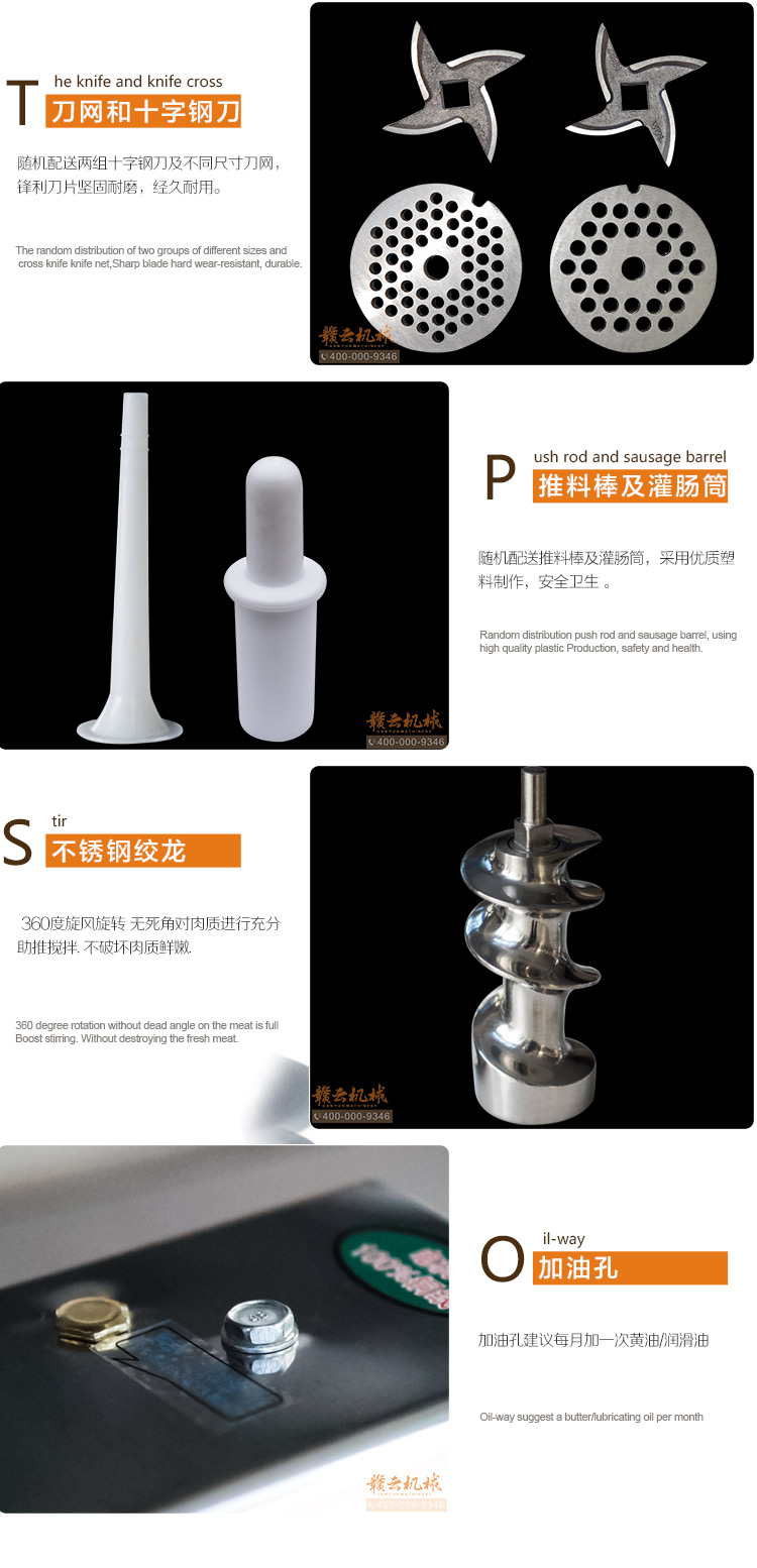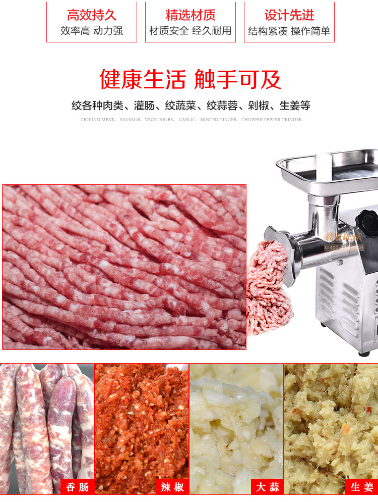 贛云臺(tái)式新款絞肉機(jī) 不銹鋼精品配銅線電機(jī) 做工升級(jí) 品質(zhì)好,冬季絞肉灌腸好設(shè)備,可絞肉末,可絞干貨,絞生姜大蒜等,配灌腸筒可灌制香腸臘腸,絞龍采用食品級(jí)不銹鋼,符合食品衛(wèi)生需求。歡迎選購(gòu)。