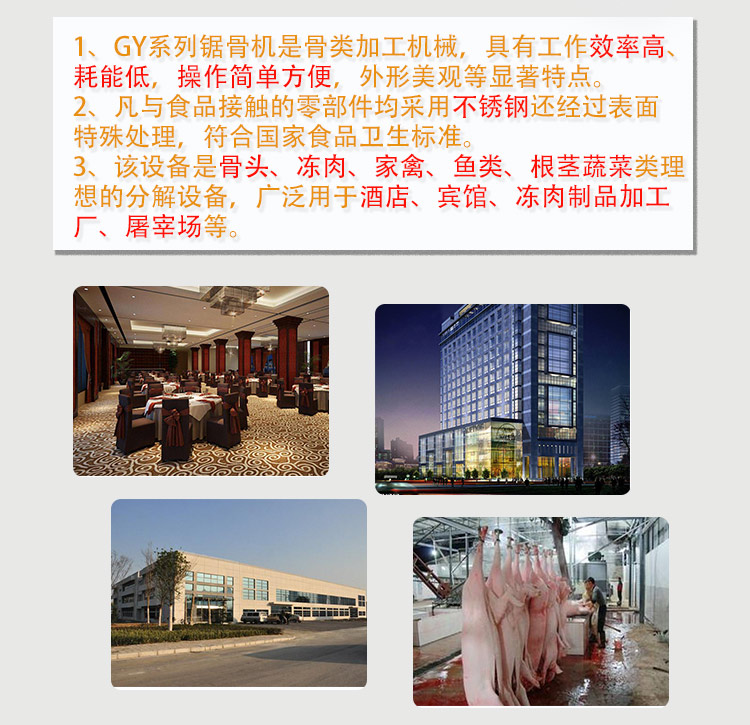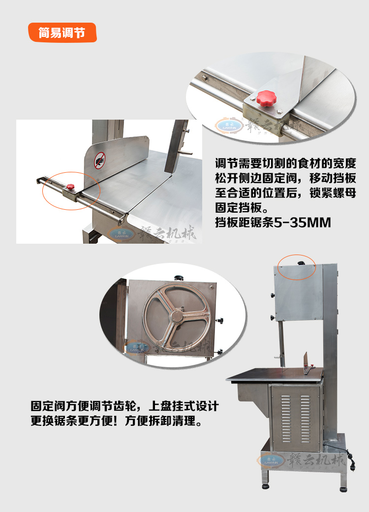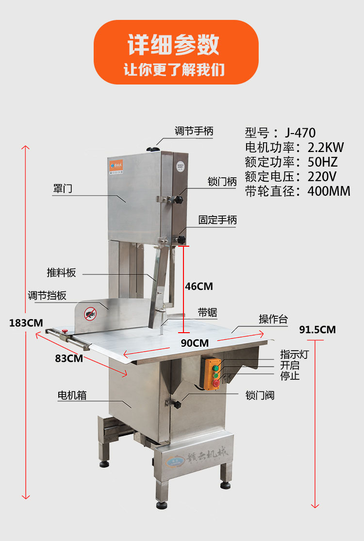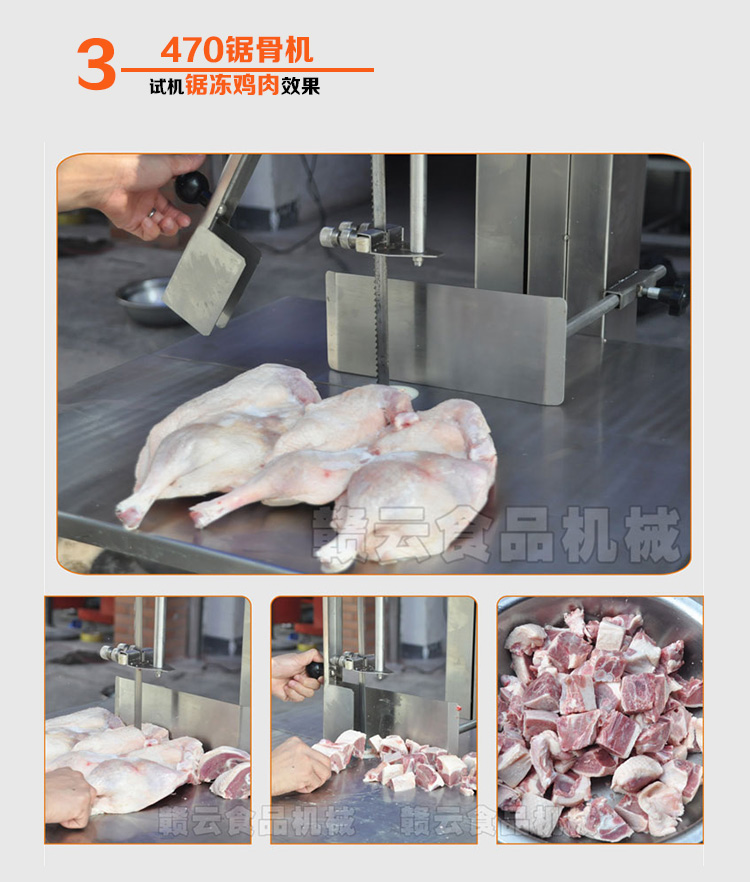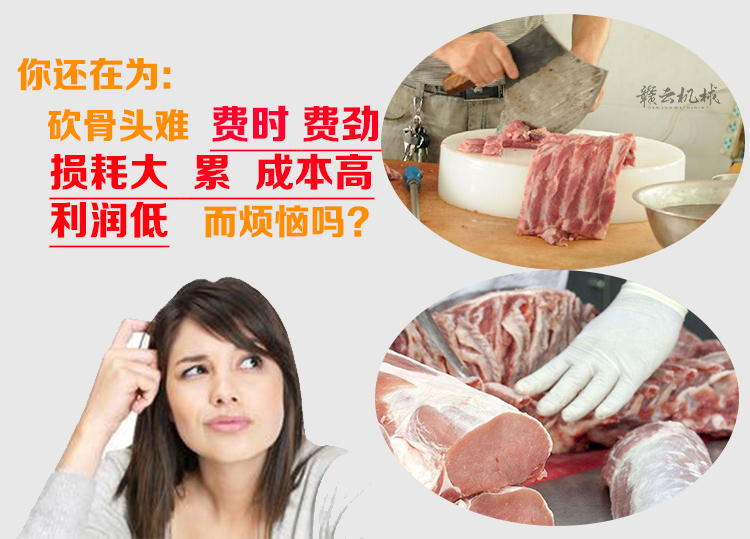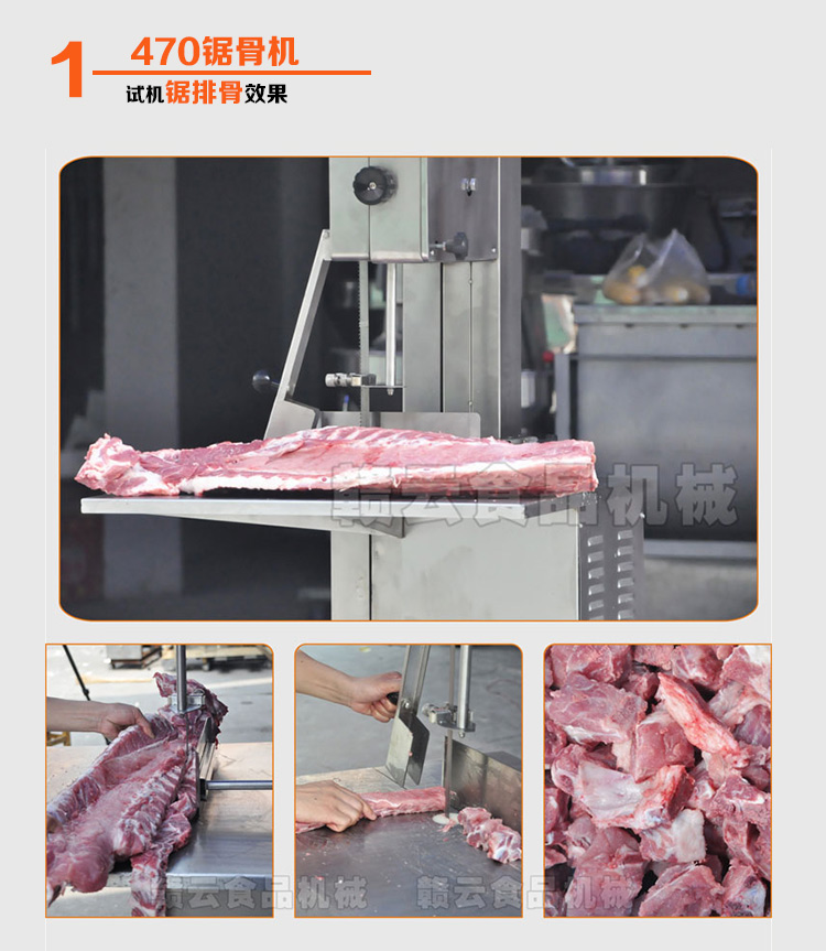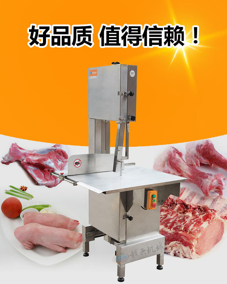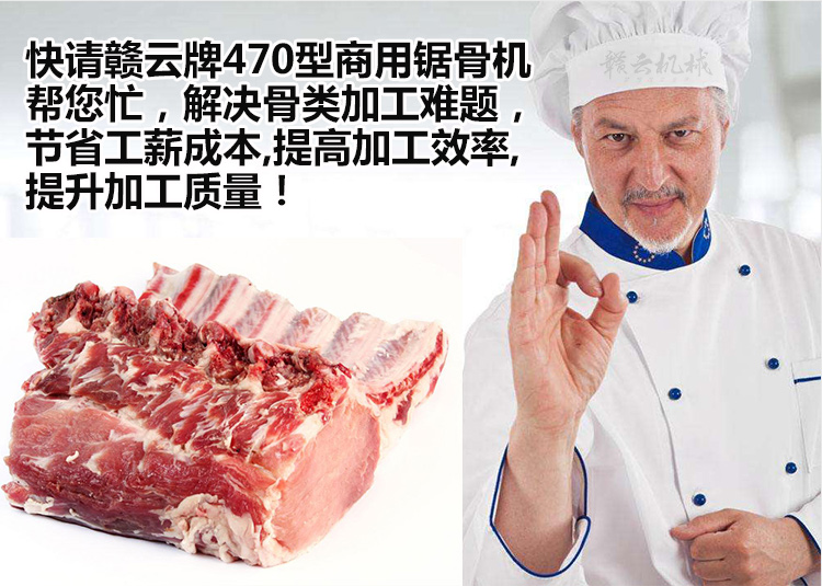 你還在為:砍骨頭難,砍骨頭累,費(fèi)時(shí),費(fèi)勁,損耗大,成本高,利潤(rùn)低而煩惱嗎?贛云牌商用鋸骨機(jī),骨頭、凍魚(yú)、凍肉、家禽、牛羊等切割專(zhuān)家,專(zhuān)切硬骨頭,470型商用鋸骨頭機(jī),切割速度快,切割效率高,切割面平整,損耗低,能耗低,操作方便快捷,深受骨類(lèi)加工商戶青睞。