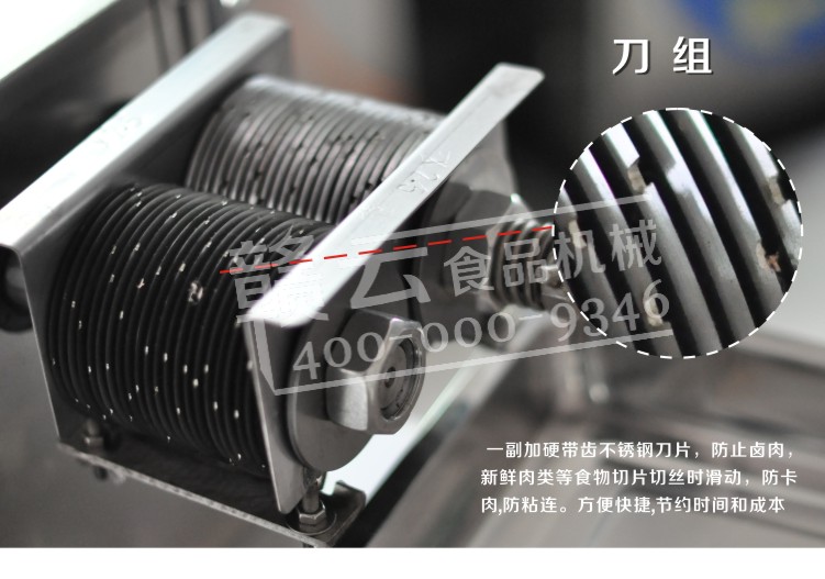 QR系列切肉機(jī)針對(duì)操作平臺(tái)安全性要求更高、衛(wèi)生清洗更方便、整體密封性更強(qiáng)、功能不單單局限于切肉,帶齒不銹鋼刀組相對(duì)運(yùn)動(dòng),防卡機(jī)、防打滑、防粘連,大大提高工作效率。