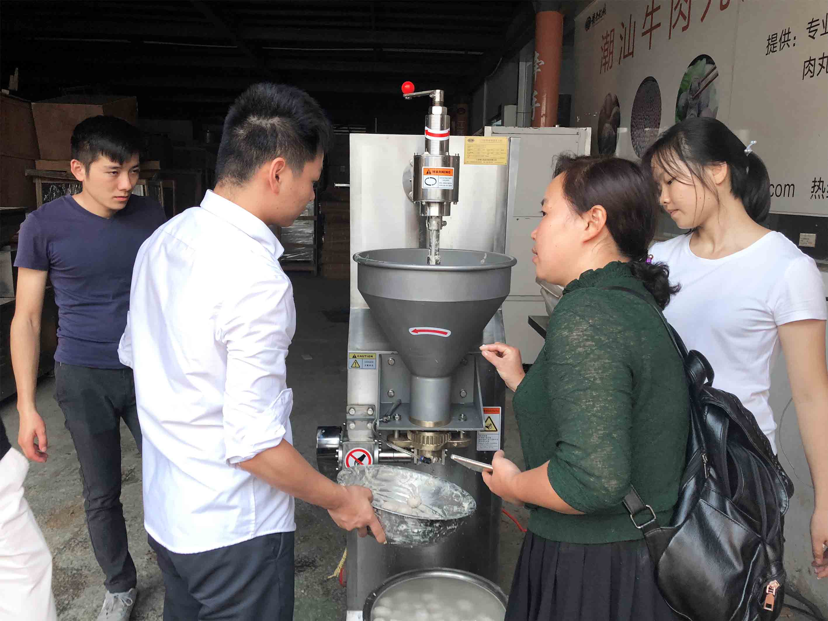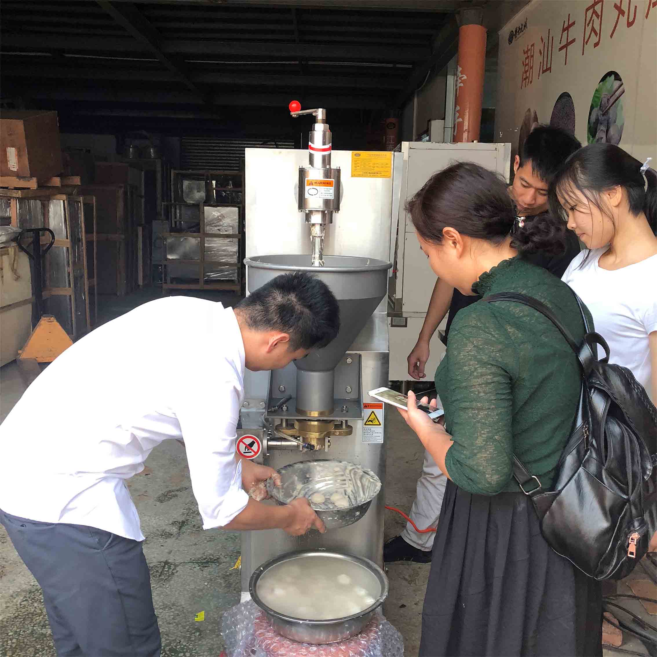 就在昨天,湖北的客戶聞名遠(yuǎn)道而來,帶著自家的肉丸配方,試用贛云的28型傳動式打漿機(jī)和170貢丸成型機(jī)兩款機(jī)器后,客戶表示,贛云牌28型傳動打漿機(jī),打出來的漿體細(xì)膩,嫩化,更主要的是這款機(jī)器可以外圈可以加冰制冷,這樣可以保證肉丸的口感。170貢丸機(jī)成型圓度統(tǒng)一,成型速度相對其他機(jī)器比較快,材質(zhì)厚實(shí)。適合客戶自家品牌丸子的要求?蛻粼嚈C(jī)的當(dāng)天下午就付了兩臺機(jī)器的全款。